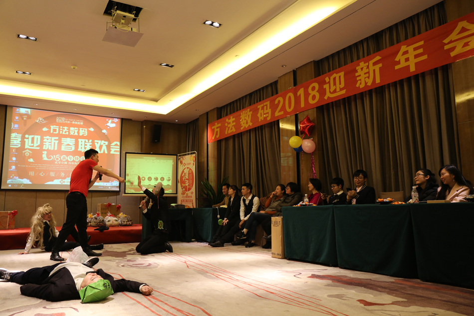 中午的午餐,大家推杯換盞,開懷暢飲,共話新年。伴隨著歡快的歌舞,2018年方法數(shù)碼迎新聯(lián)歡會也正式拉開了序幕。多才多藝的方法人,給我們展現(xiàn)了一場場別開生面的表演,歌曲、舞蹈、小品等形式多樣的文藝節(jié)目,場場都獲得滿堂喝彩,掌聲不斷。