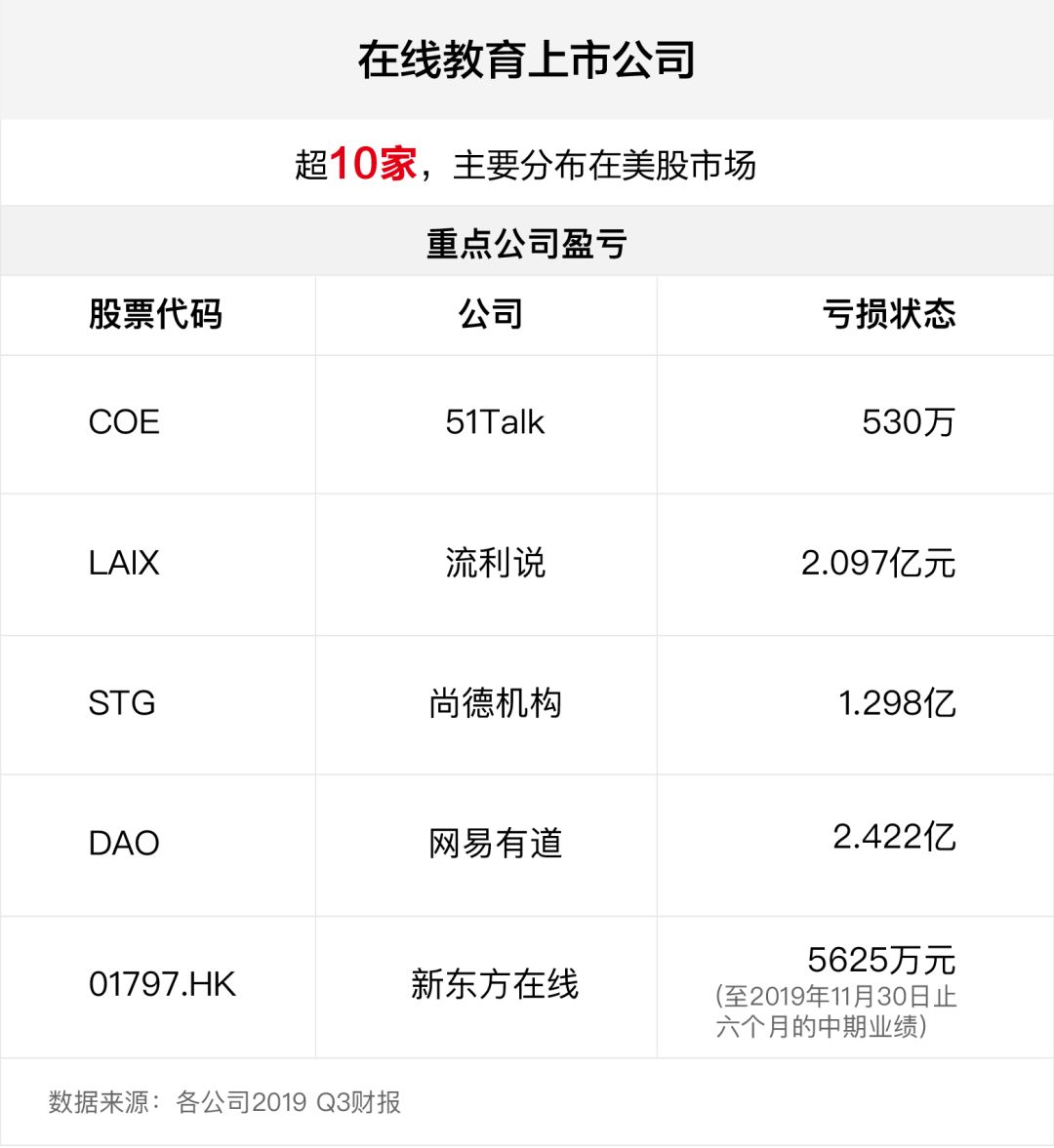 記者注意到,目前成功上市的網(wǎng)絡(luò)教育公司有10多家,大部分集中在美國股市。根據(jù)已公布的2019年第三季度財(cái)報(bào)顯示,流利談話、51Talk、尚德、新東方在線等知名公司均出現(xiàn)不同程度的虧損。